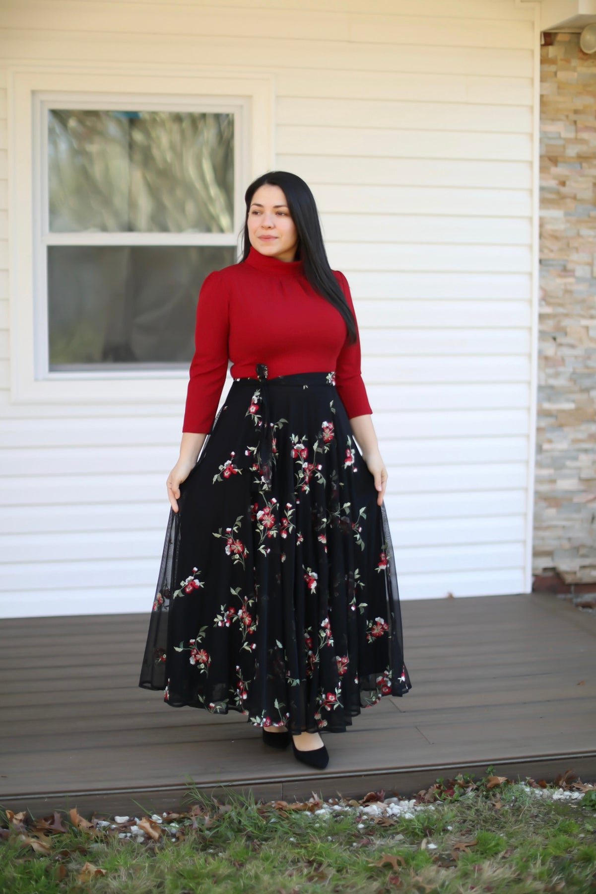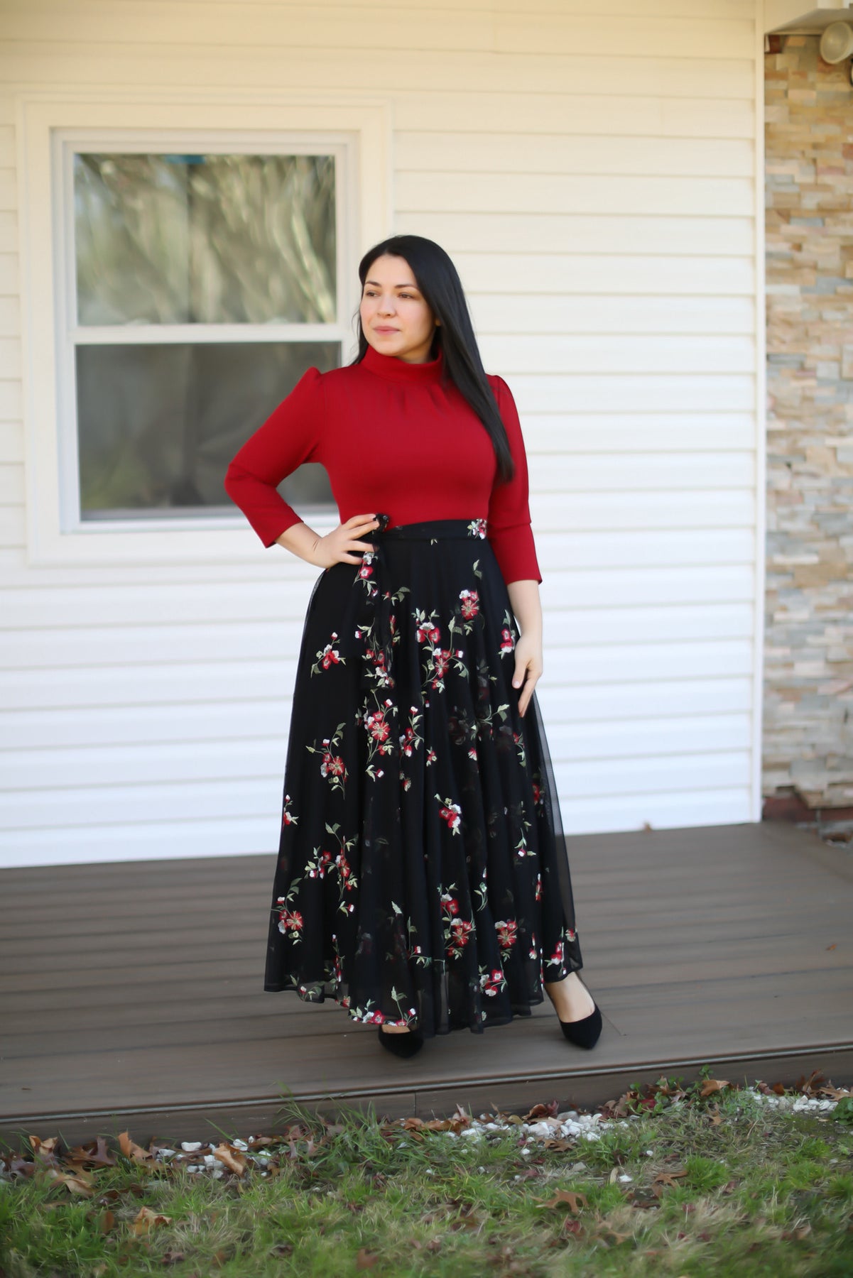 Red Floral Embroidery Maxi Dress