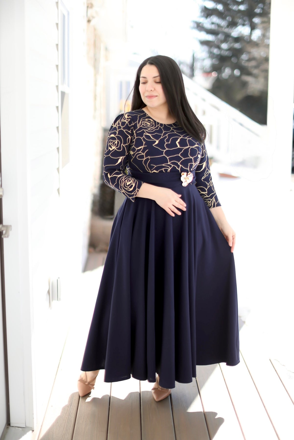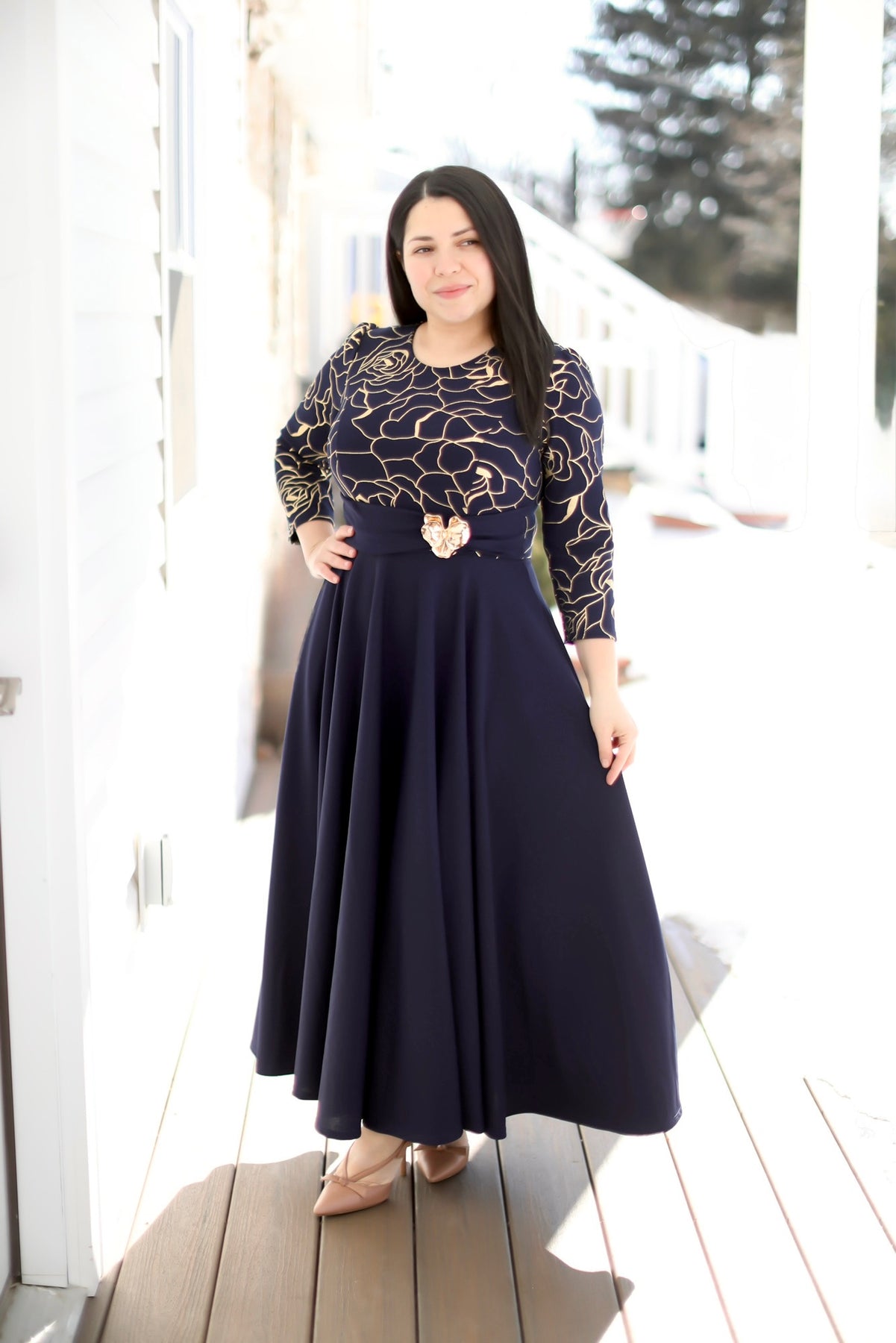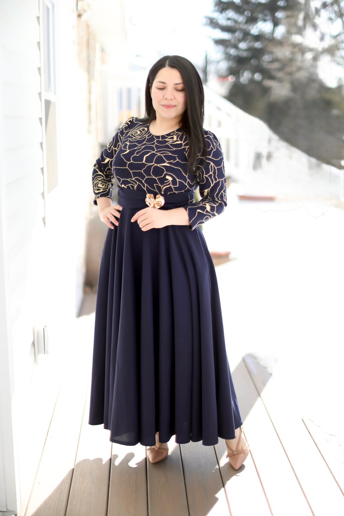 Ruth Navy / Gold Maxi Dress