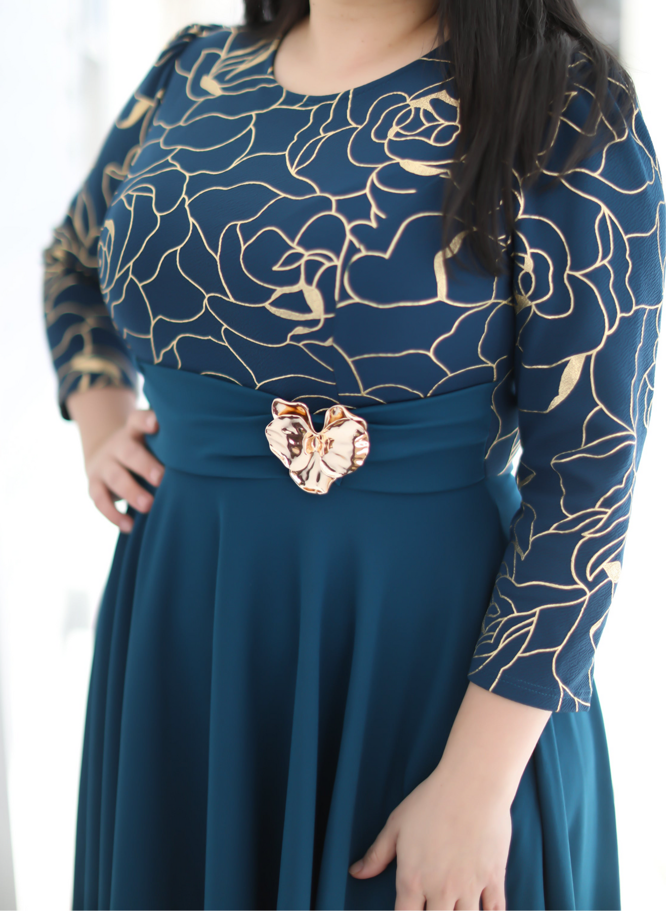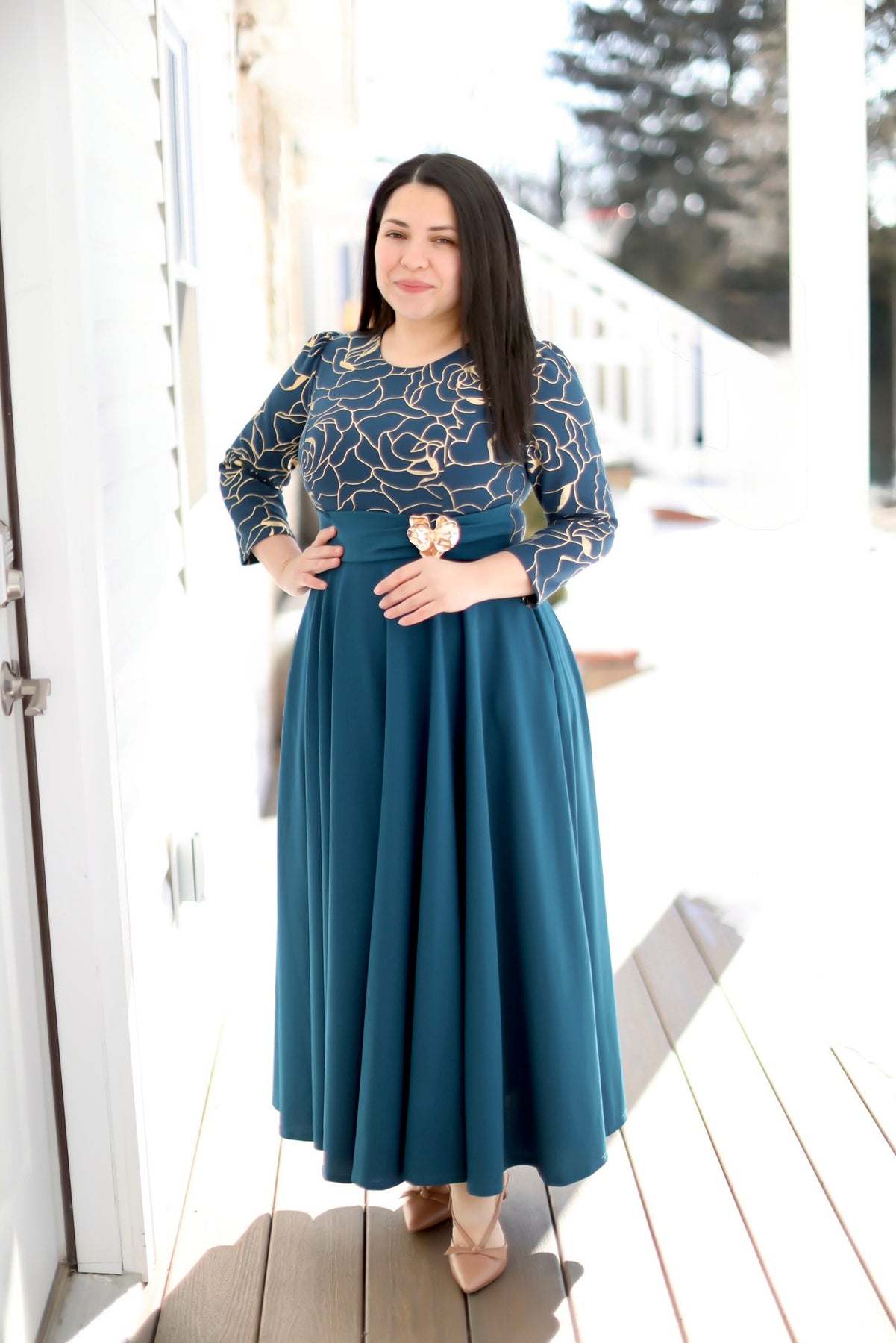 Ruth Teal / Gold Maxi Dress