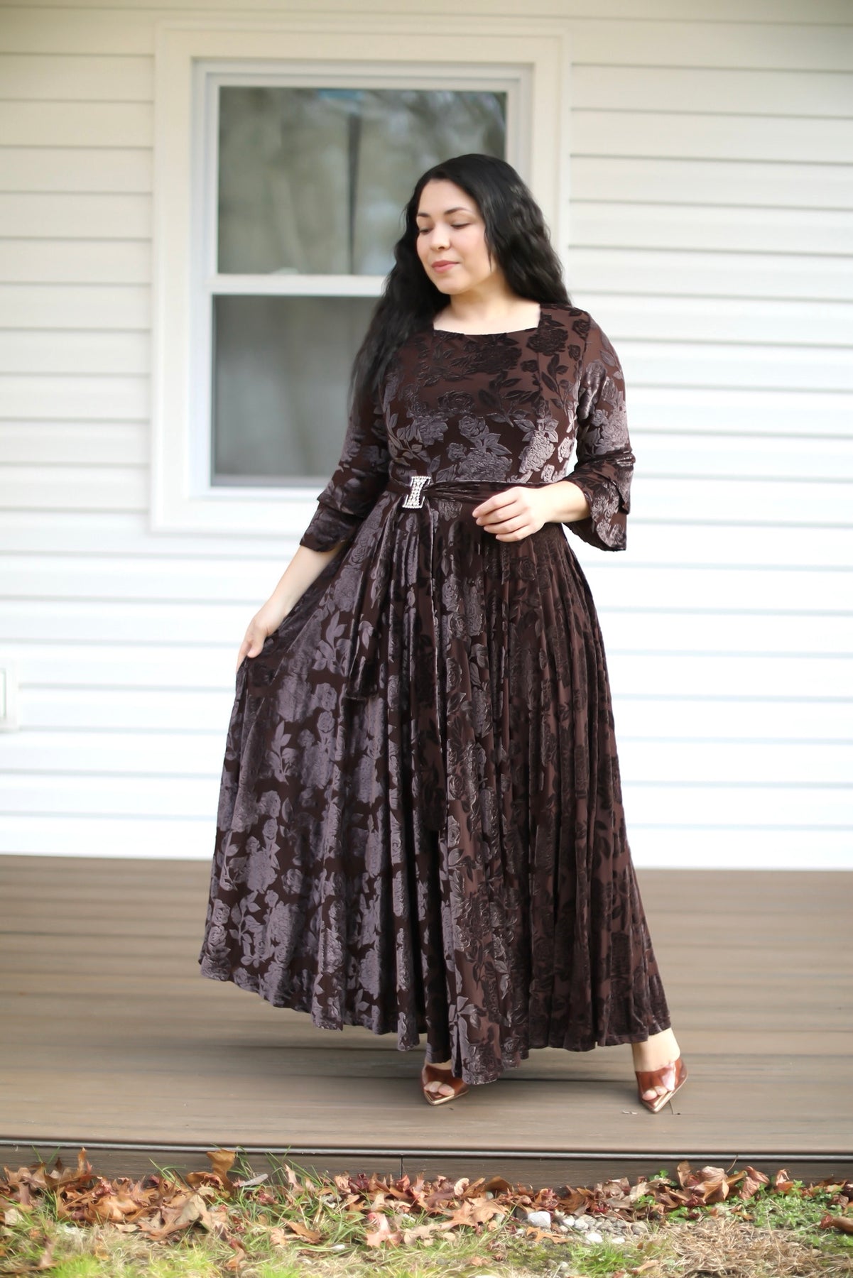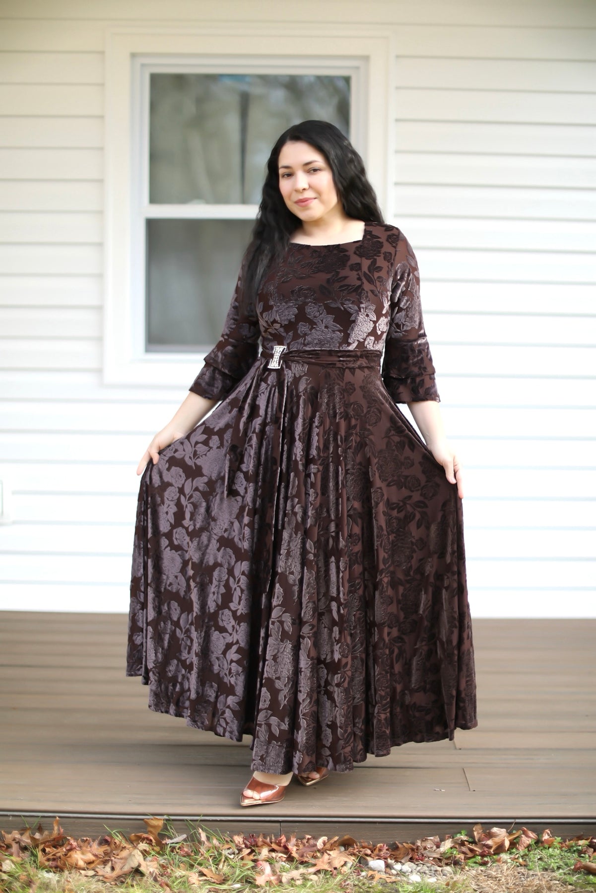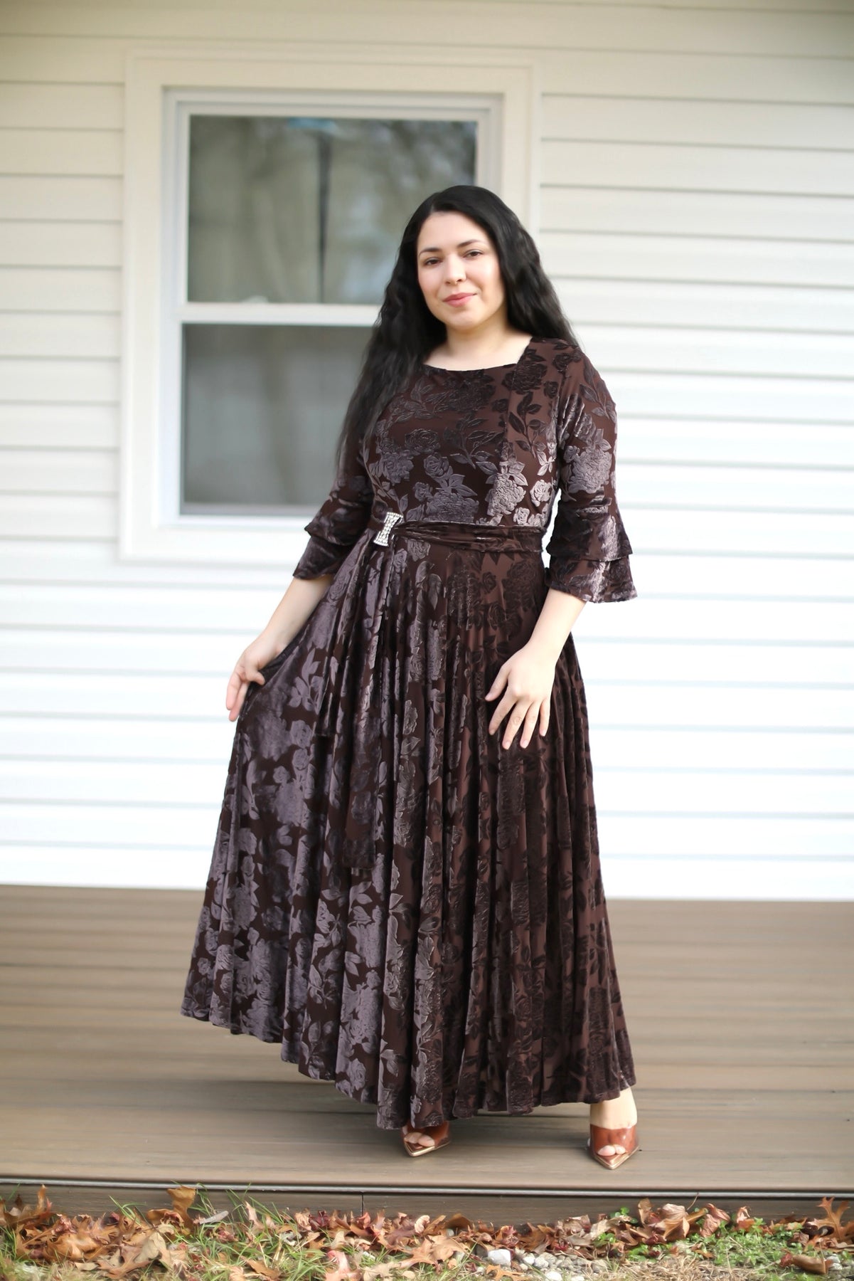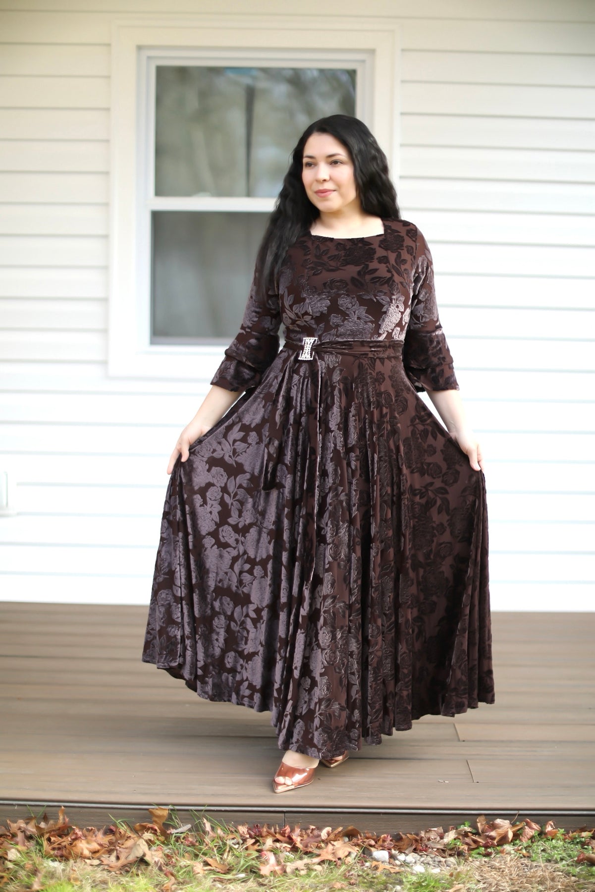 Hermoso vestido hecho de tela gamuza , perfecto para ocaciones especiales