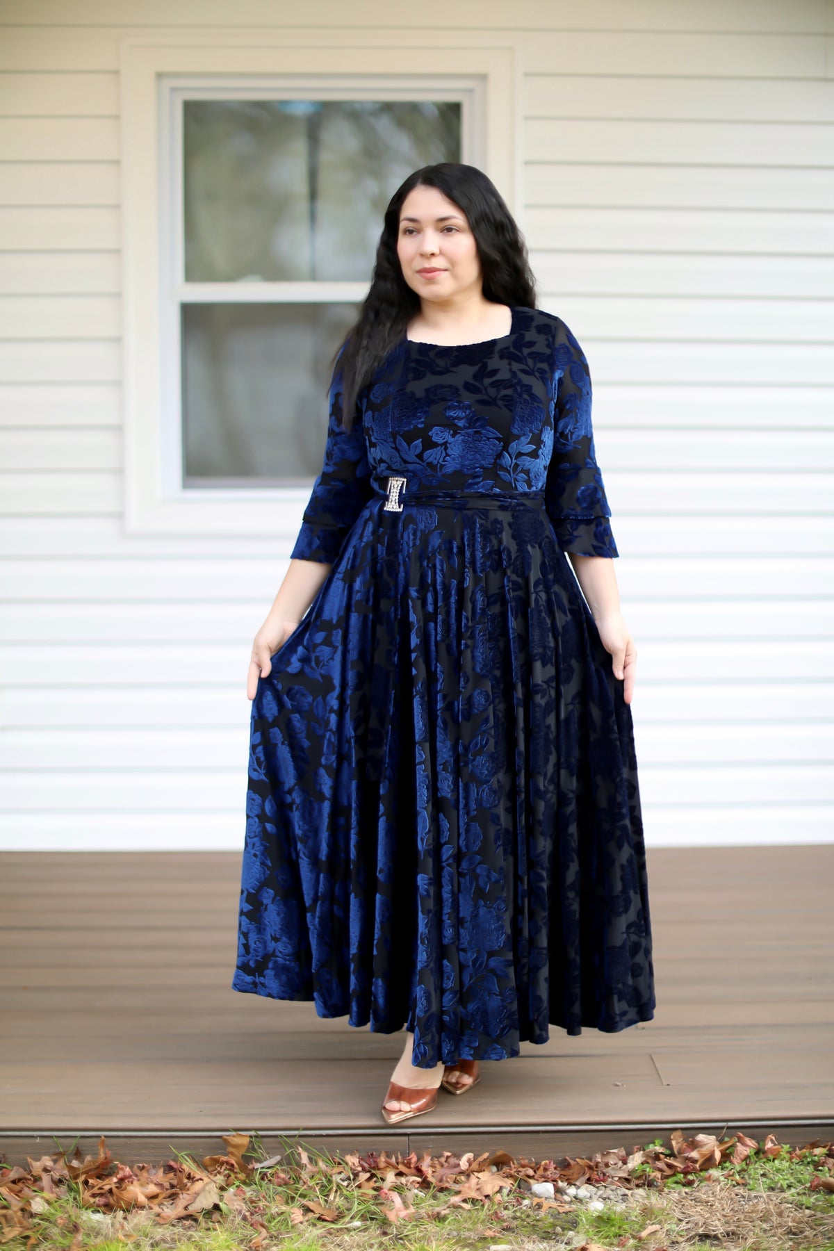 Hermoso vestido hecho de tela gamuza , perfecto para ocaciones especiales