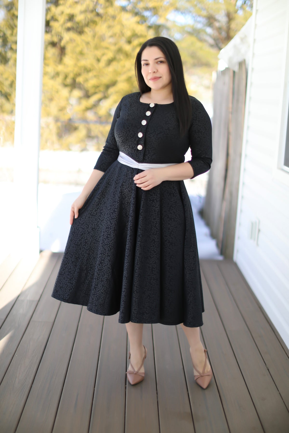 VESTIDO importado, a altura de pantorrilla estira un poco por primera vez este estilo con aplicacion en cuello
