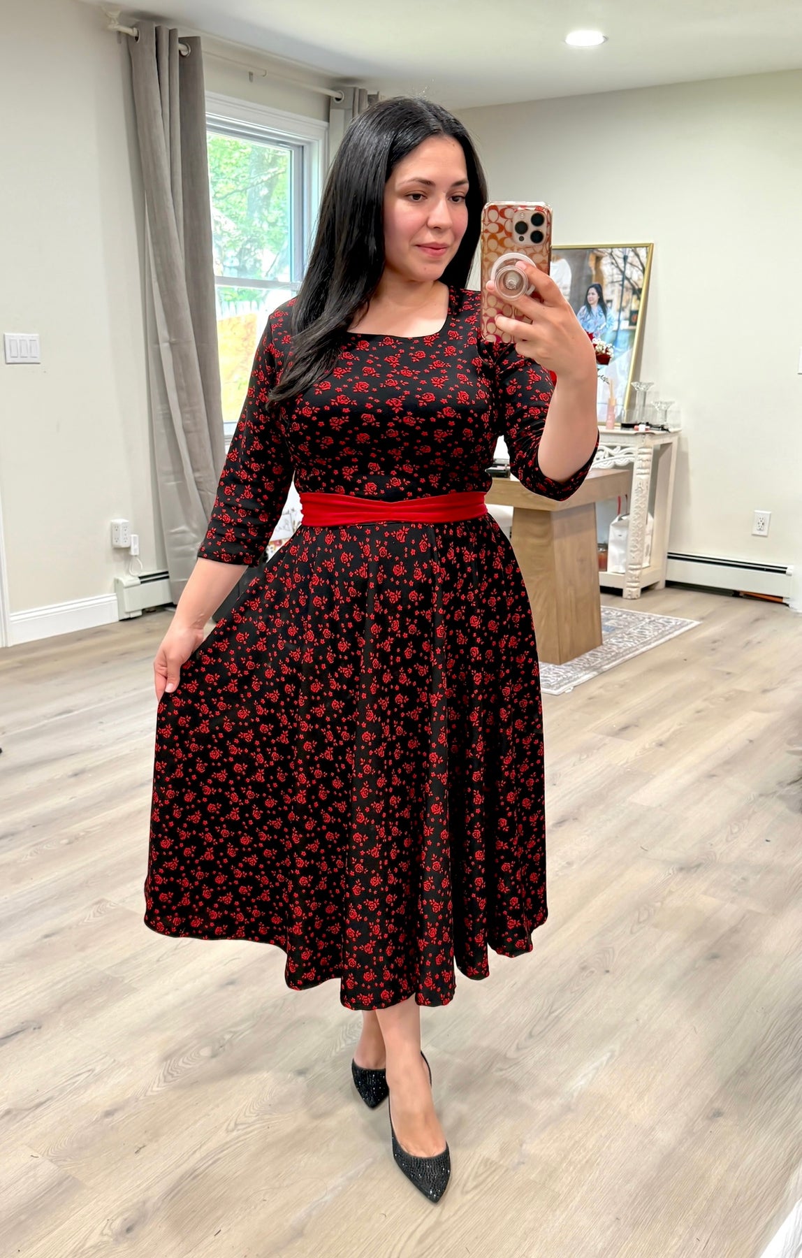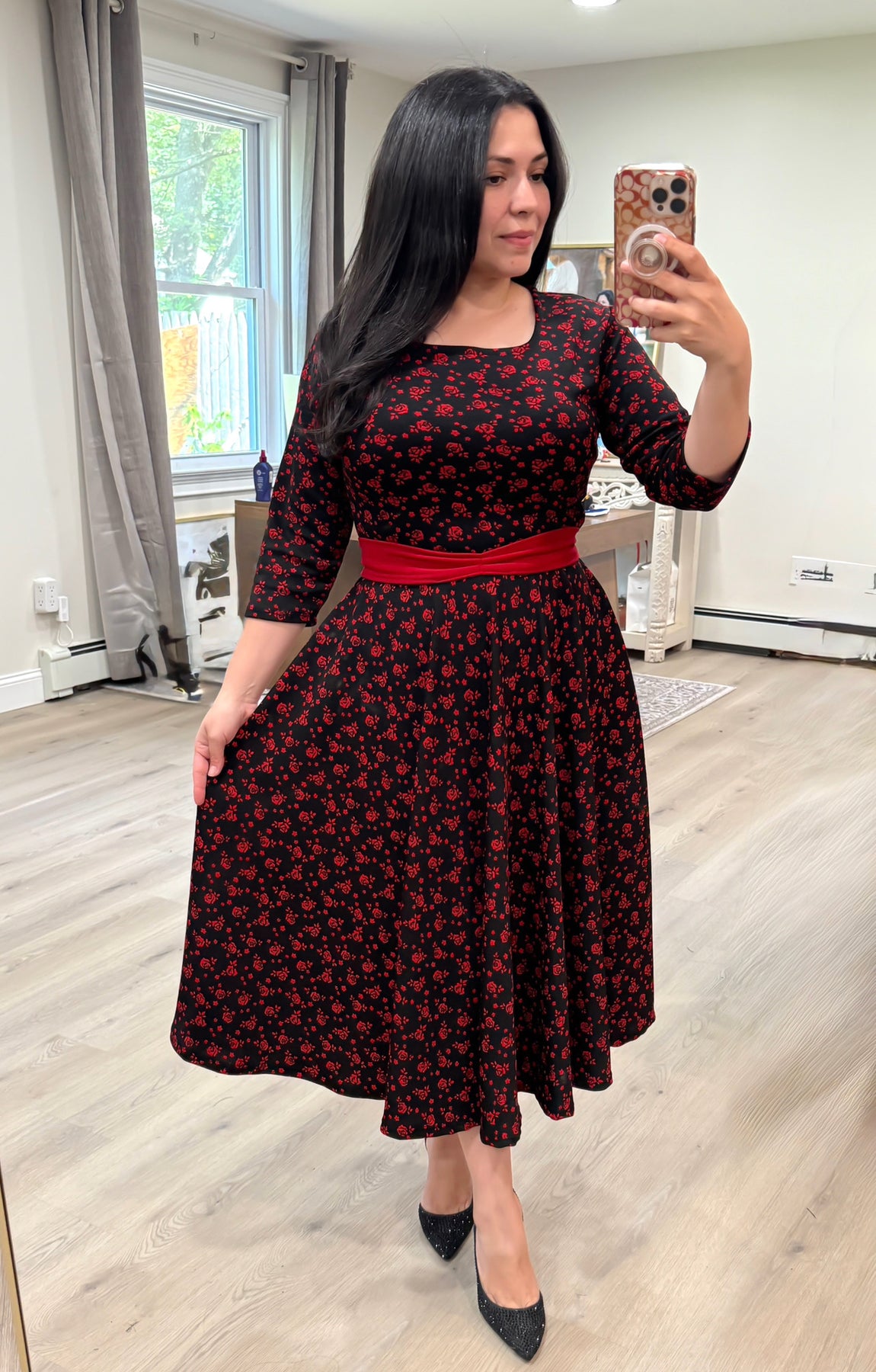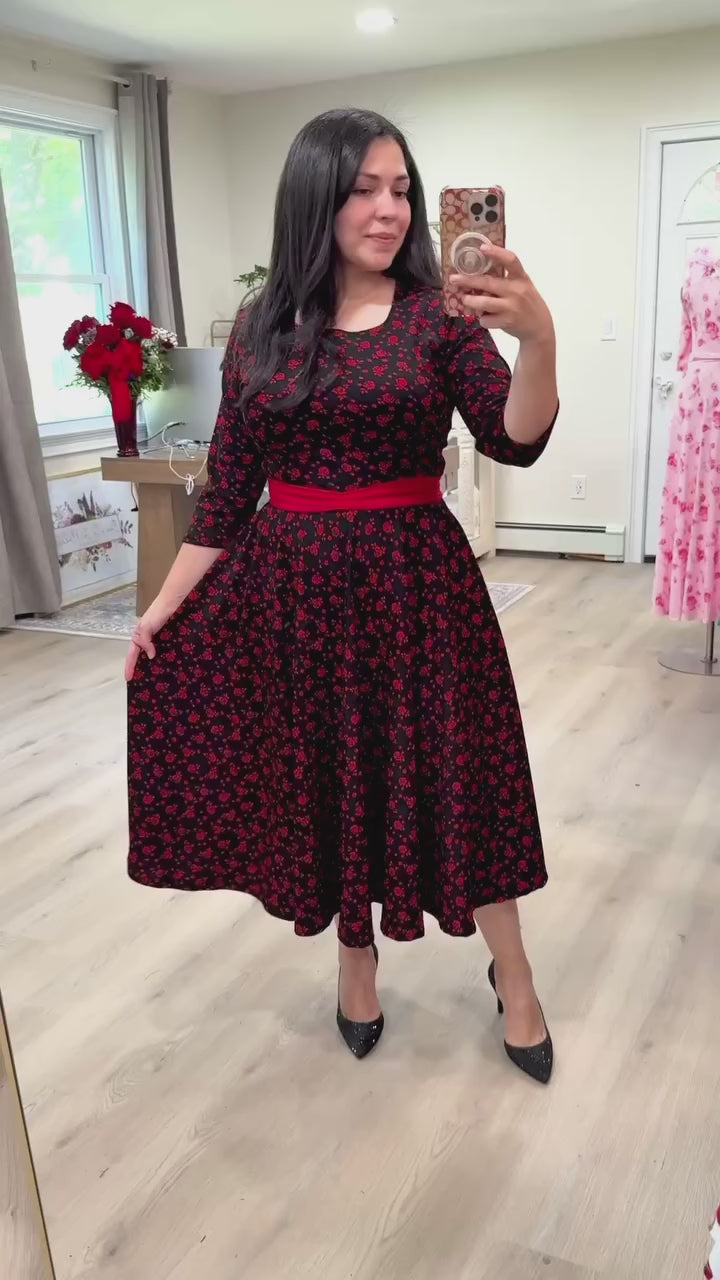 Patricia Red / Black Midi Dress